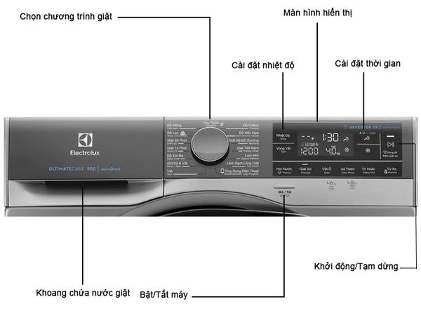 <> Bảng điều khiển với các chương trình giặt đa dạng