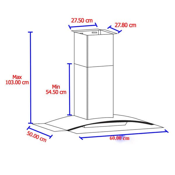 - Thiết kế dạng gắn tường rộng 600mm kính cong