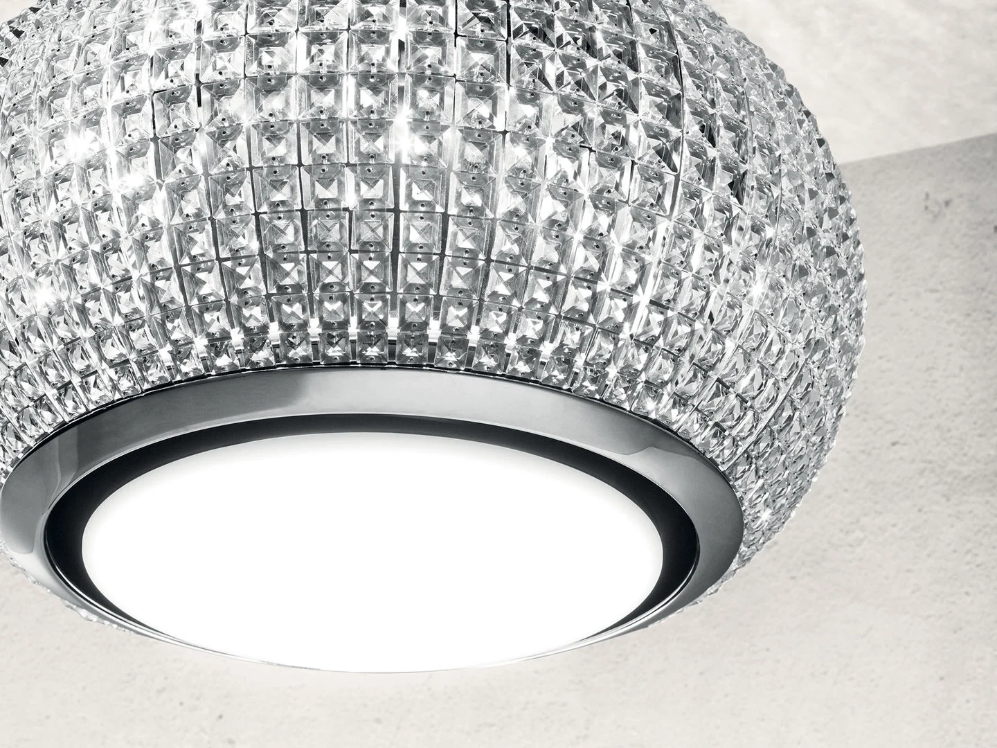 Không gian đầy hình sao, tạo nên bầu không khí huyền diệu, Với lăng kính Pha lê trắng phản chiếu ánh sáng và màu sắc. Một thiết kế tinh tế và cân bằng nhờ sự kết hợp giữa Pha lê với đèn LED. Ban ngày nó phải chiếu ánh sáng tự nhiên, ban đêm nó toả sáng với các hiệu ứng đặc biệt.