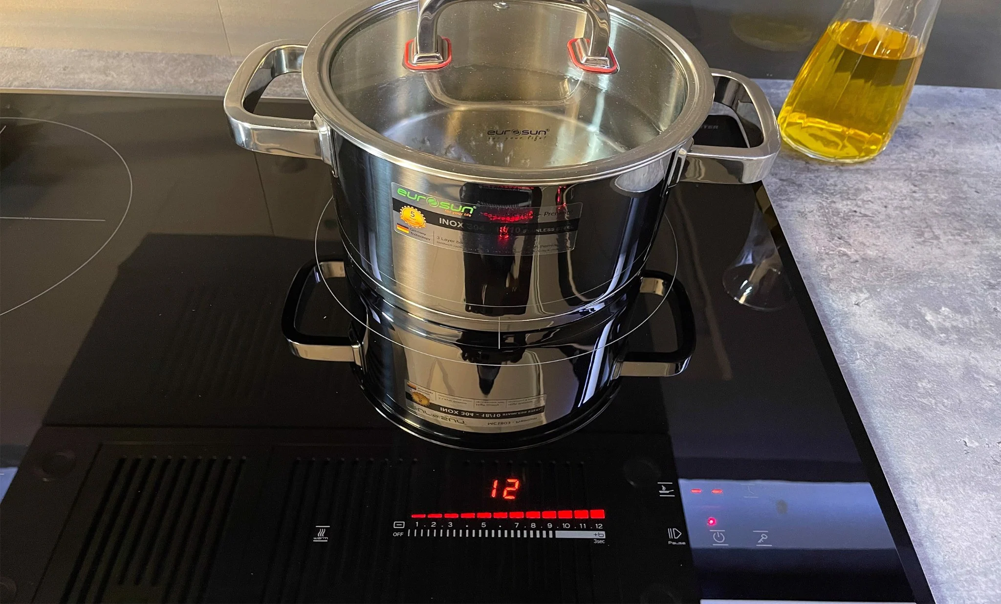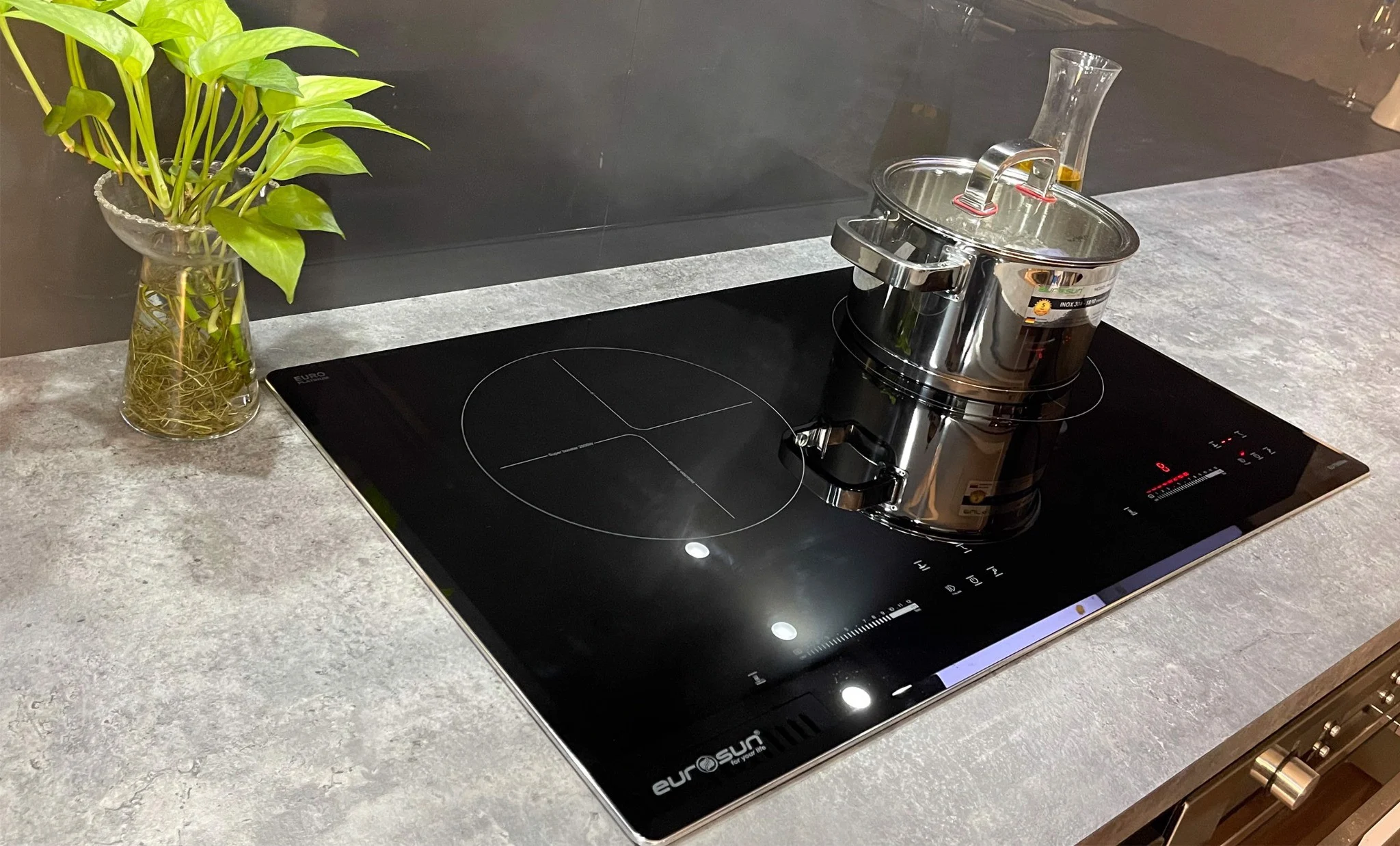 Tự động phát hiện vùng nấu và vùng nấu chỉ nóng lên khi có nồi: Các sản phẩm bếp từ của Eurosun sẽ chỉ khởi động công suất khi nồi được đặt lên vùng nấu, trường hợp chưa đặt nồi khi đã khởi động, bếp sẽ không đóng công suất và cảnh báo mã lỗi không có nồi hoặc nồi không phù hợp.