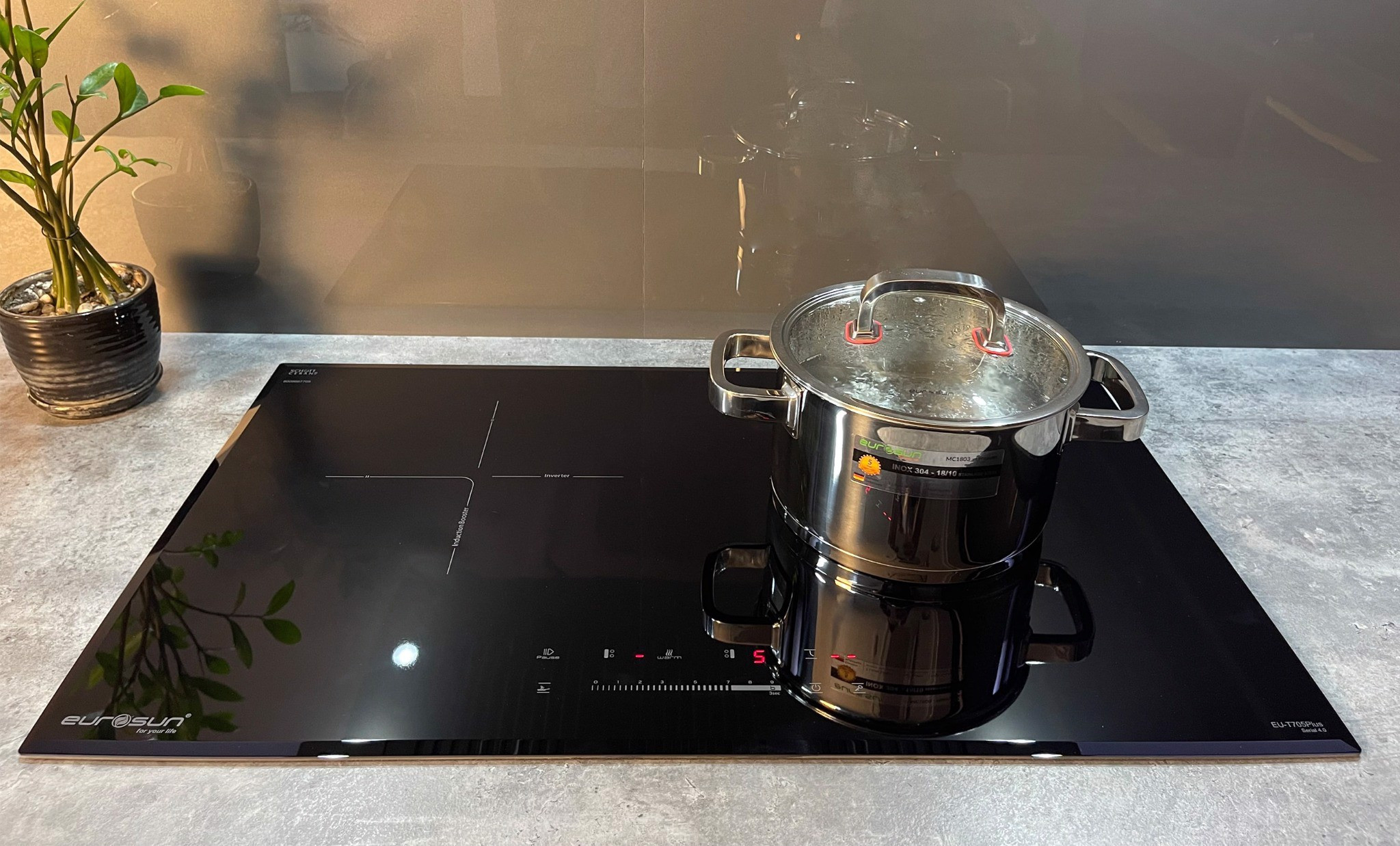 Tự động phát hiện vùng nấu và vùng nấu chỉ nóng lên khi có nồi: Các sản phẩm bếp từ của Eurosun sẽ chỉ khởi động công suất khi nồi được đặt lên vùng nấu, trường hợp chưa đặt nồi khi đã khởi động, bếp sẽ không đóng công suất và cảnh báo mã lỗi không có nồi hoặc nồi không phù hợp.