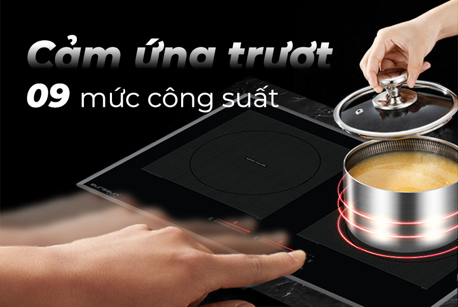 Điều khiển trượt cảm ứng 9 mức công suất độc lâp, nấu ăn với độ chính xác cao, phản ứng tức thì với mức nhiệt mong muốn