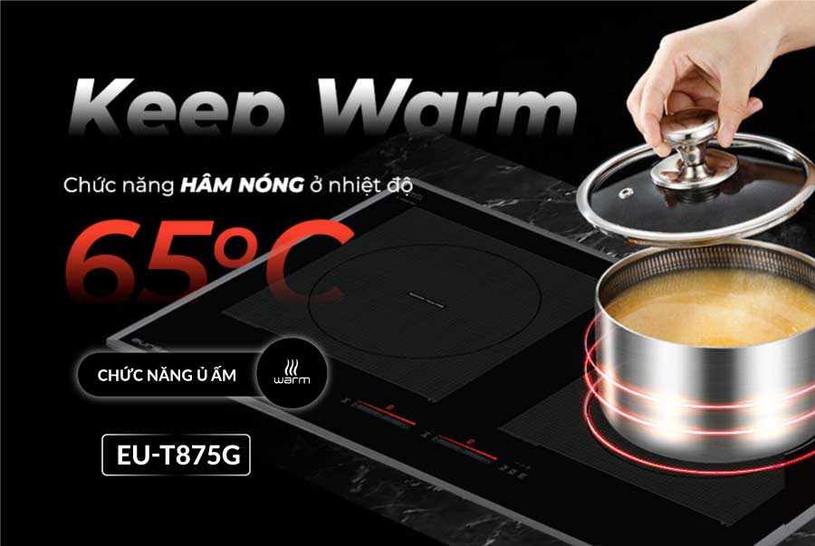Với công nghệ biến tần INVERTER vượt trội, bếp từ Eurosun EU-T875G có khả năng ủ ấm ở mức nhiệt độ theo ý muốn, chức năng ủ ấm được lập trình giữ mức nhiệt độ ổn định ở các mức 65 ºC giúp chúng ta duy trì nhiệt cho thức ăn luôn nóng, ấm mà không bị nguội đi phải đun lại nhiều lần làm giảm dinh dưỡng trong thức ăn, đặc biệt về mùa đông thời tiết lạnh giá.