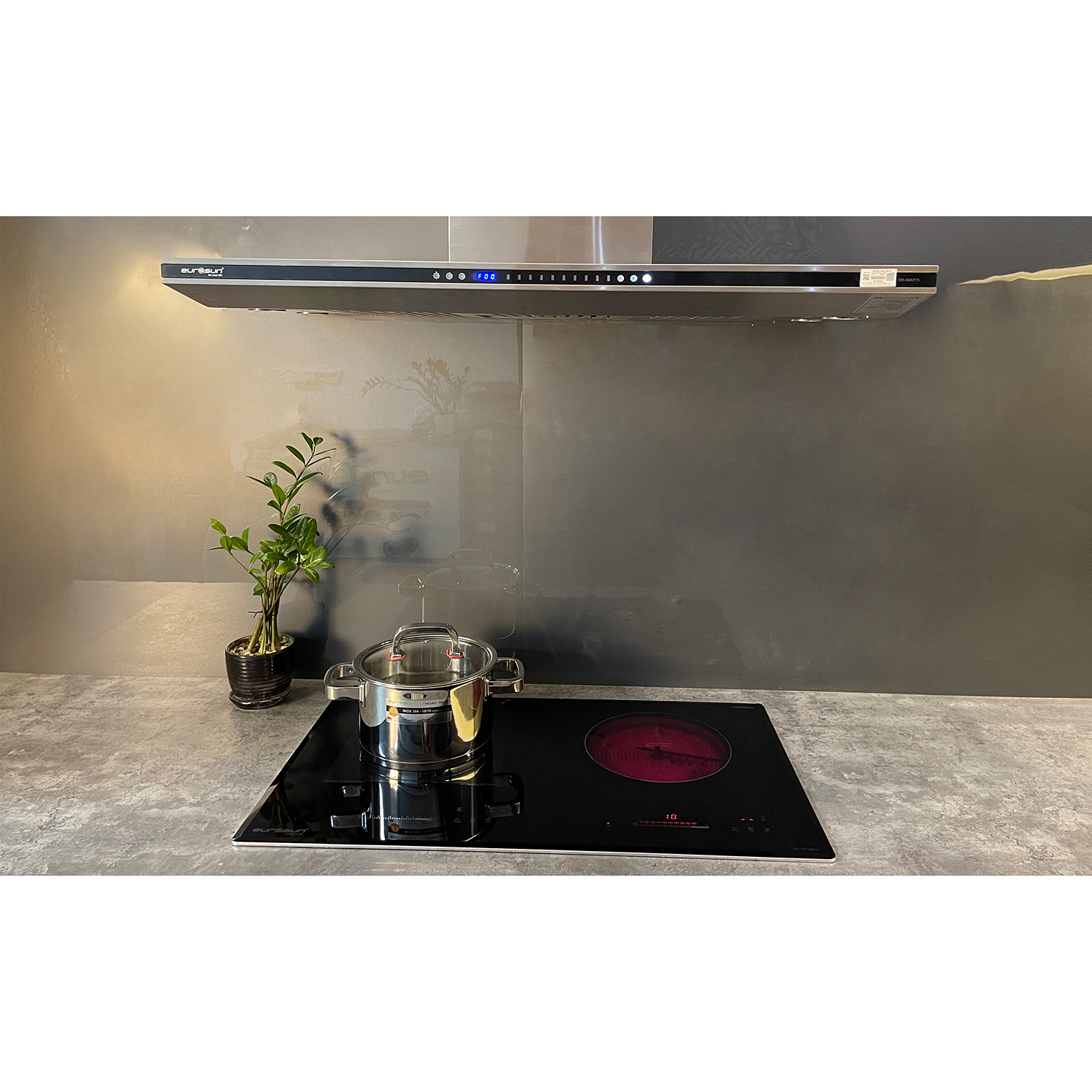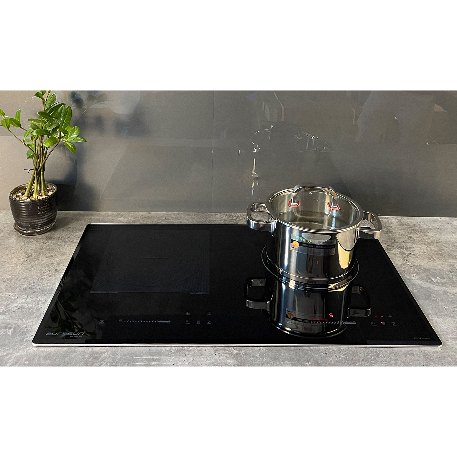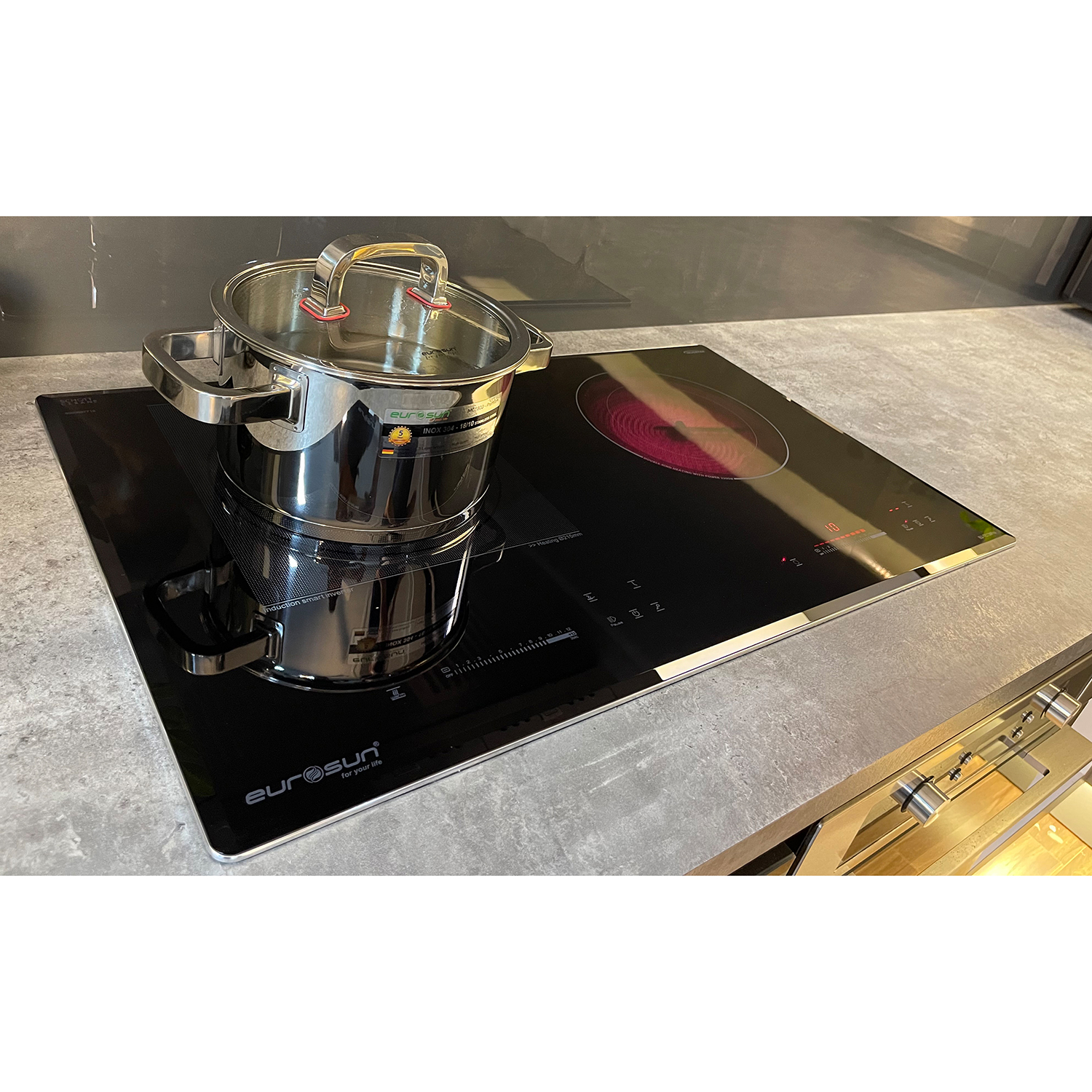 Bảo vệ quá nhiệt (cảm biến nhiệt độ tích hợp trong từng vùng nấu): Bếp Eurosun được thiết kế cảm biến nhiệt độ dưới mỗi vùng nấu, khi có hiện tượng quá nhiệt (nồi đun bị cạn, cháy…) bếp sẽ chủ động ngắt công suất để đảm bảo an toàn cho thiết bị cũng như đảm bảo không sự cố đáng tiếc xảy ra.
