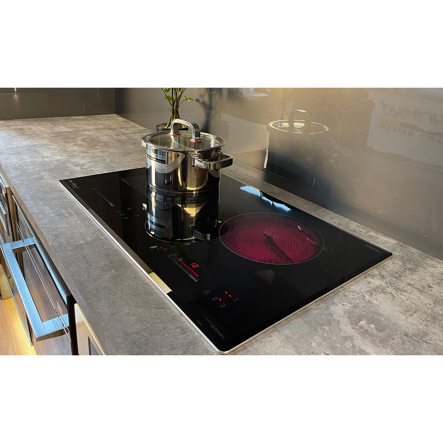 Tính năng chia sẻ công suất của hai vùng nấu tối đa 3600W: Khi một vùng nấu hoạt động ở mức công suất cao, các vùng nấu còn lại sẽ tự động điều chỉnh giảm để đảm bảo tổng công suất bếp không vượt quá 3600W, bảo vệ cho các thiết bị điện khác trong gia đình không bị quá tải đường dây.