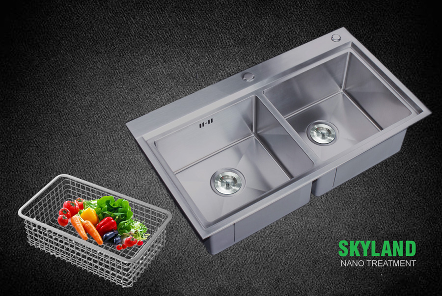 Phần mặt chậu được thiết kế 2 lỗ để lắp vòi, 1 lỗ lắp vòi rửa bát thông thường, lỗ còn lại có thể sử dụng để lắp thêm vòi lọc nước của máy lọc nước RO.