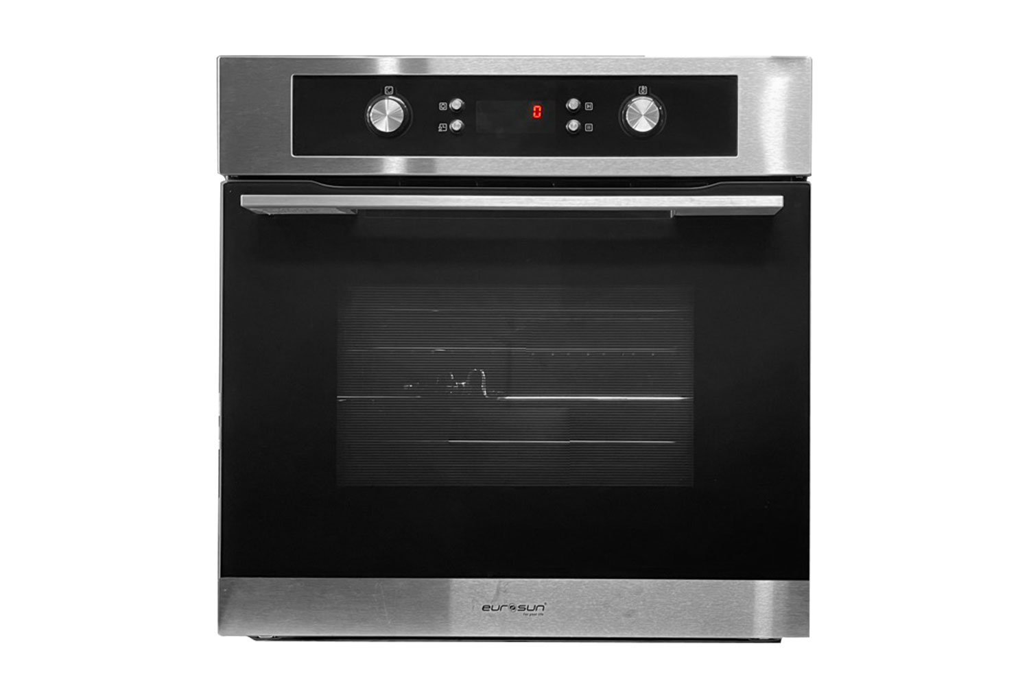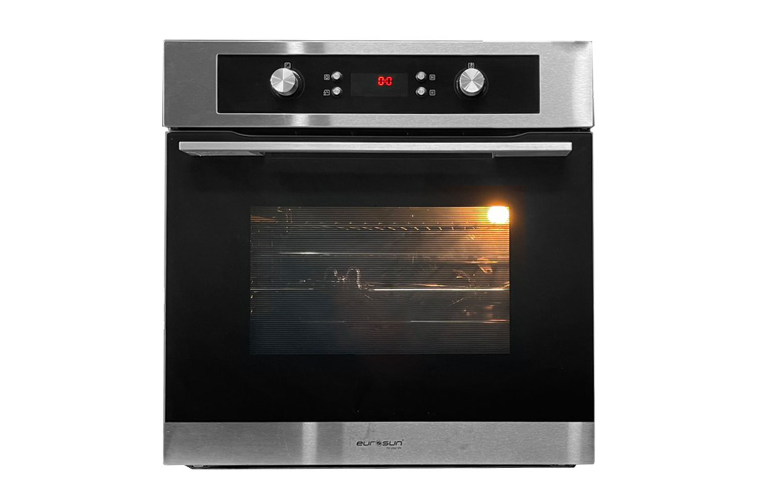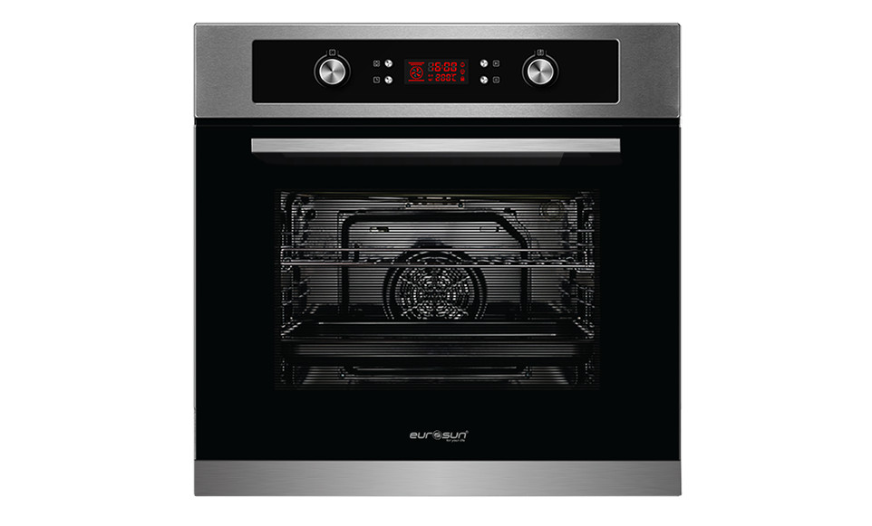 Bảng điều khiển điện tử kết hợp núm điều chỉnh âm và màn hình LED: Bảng điều khiển lò nướng Eurosun EOV65DE hiển thị rõ ràng, dễ thao tác và sử dụng, núm điều chỉnh âm tạo điểm nhấn thiết kế và không gian sang trọng cho lò