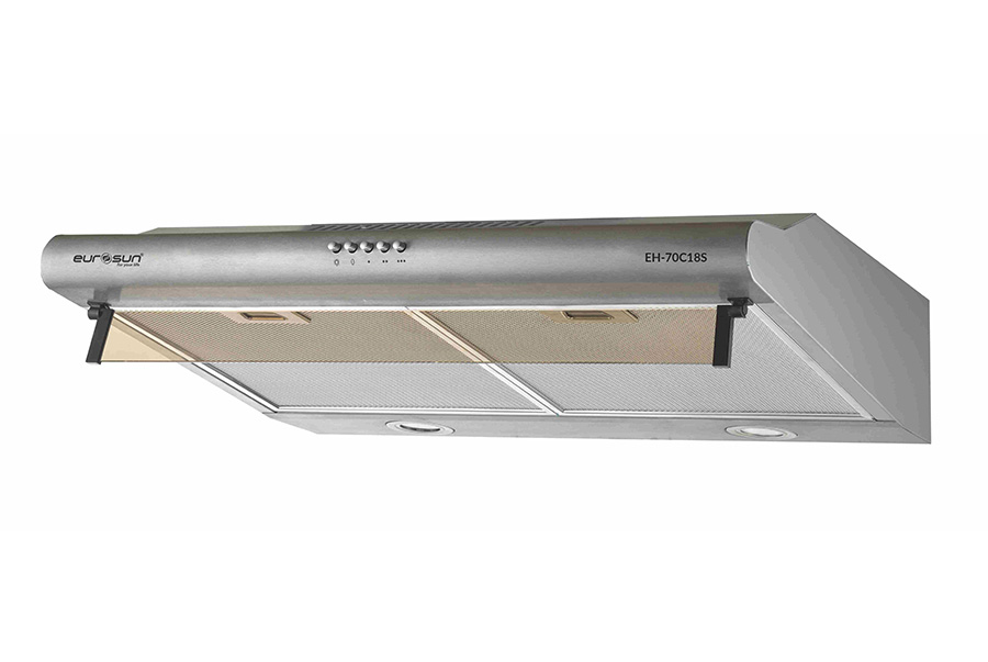 Hút mùi Eurosun EH-70C18S là dòng hút mùi cổ điển kiểu dáng mỏng có thể lắp âm tủ thu gọn. Thân máy được làm bằng inox sơn tĩnh điện màu đen và kính cường lực màu đen tạo lên vẽ đẹp sang trọng trong không gian bếp.