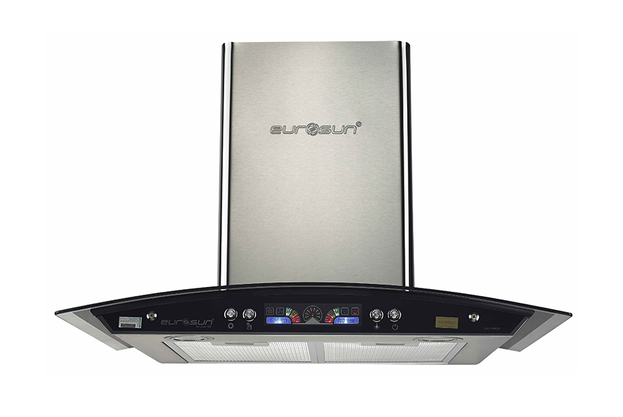 Máy Hút mùi Eurosun EH-90K06 là dòng máy hút mùi gắn tường thiết kế dạng kính cong. Thân máy inox SUS 304 dày 0.5mm kết hợp với kính màu Tempered dày 5.5mm tạo lên vẻ đẹp sang trọng trong không gian bếp.