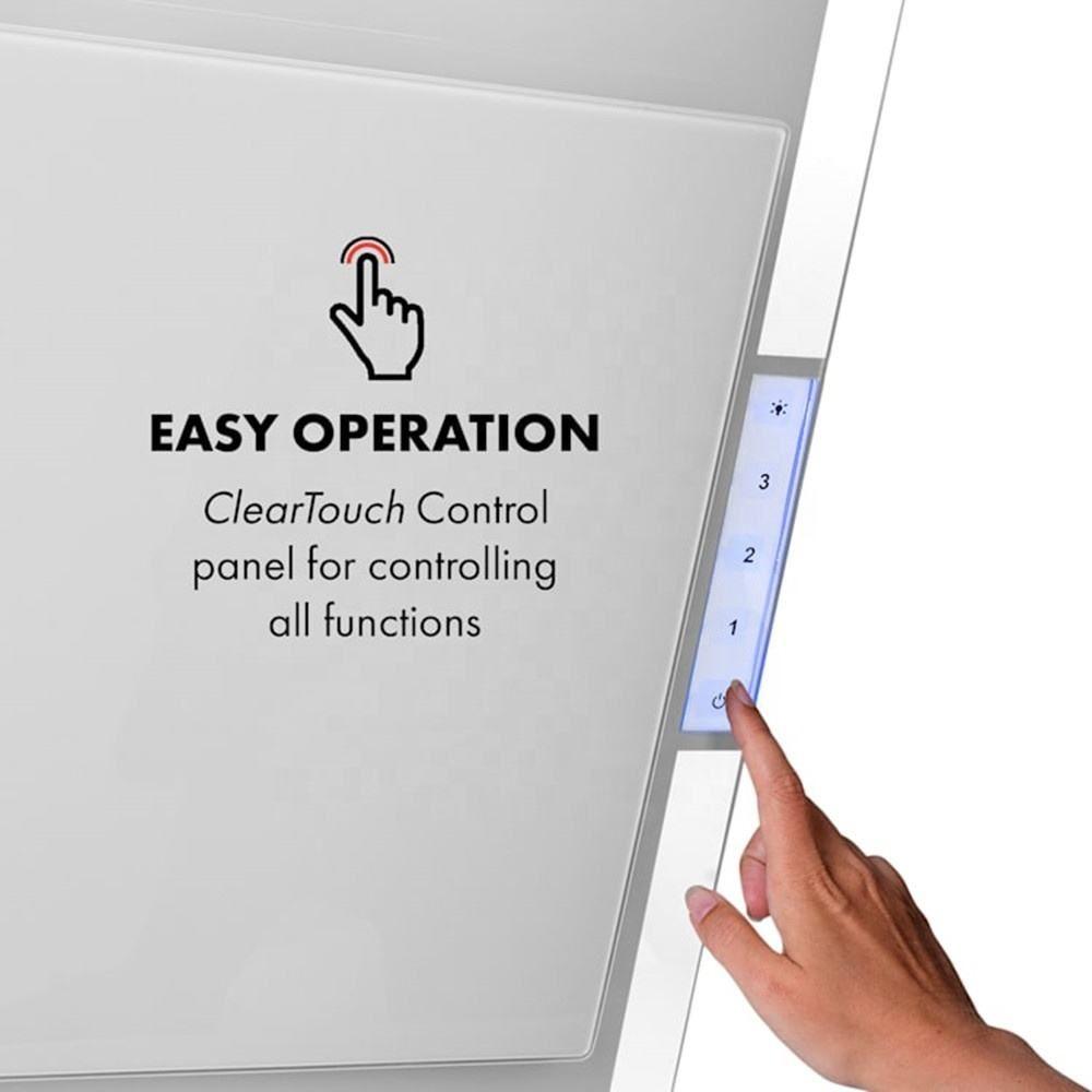 Máy hút mùi Eurosun EH-70CN78W sử dụng bảng điều khiển cảm ứng gồm 3 tốc độ hút phù hợp với lượng mùi và khói khi nấu ăn để đảm bảo sạch mùi cho không gian bếp nhà bạn. Hệ thống đèn chiếu sáng của máy gồm 2 đèn Led có tác dụng chiếu sáng và làm cho công việc nấu ăn thêm thuận lợi. Lưới lọc mỡ bằng hợp kim gồm nhiều lớp để ngăn chặn triệt để mùi, bụi lọt vào bên trong máy gây hỏng động cơ. Tấm lưới này có thể tháo rời để vệ sinh một cách dễ dàng.