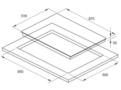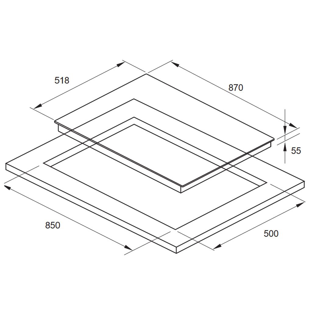 - Kích thước bếp :870R x 518S x 50C( mm)