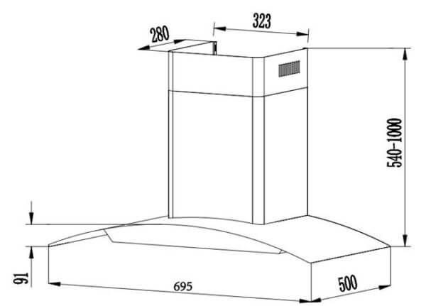 - Kích thước ống khói: 323*280mm