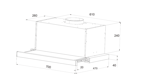 - Kích thước sản phẩm : R700*D470*Cao240 mm