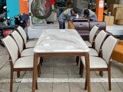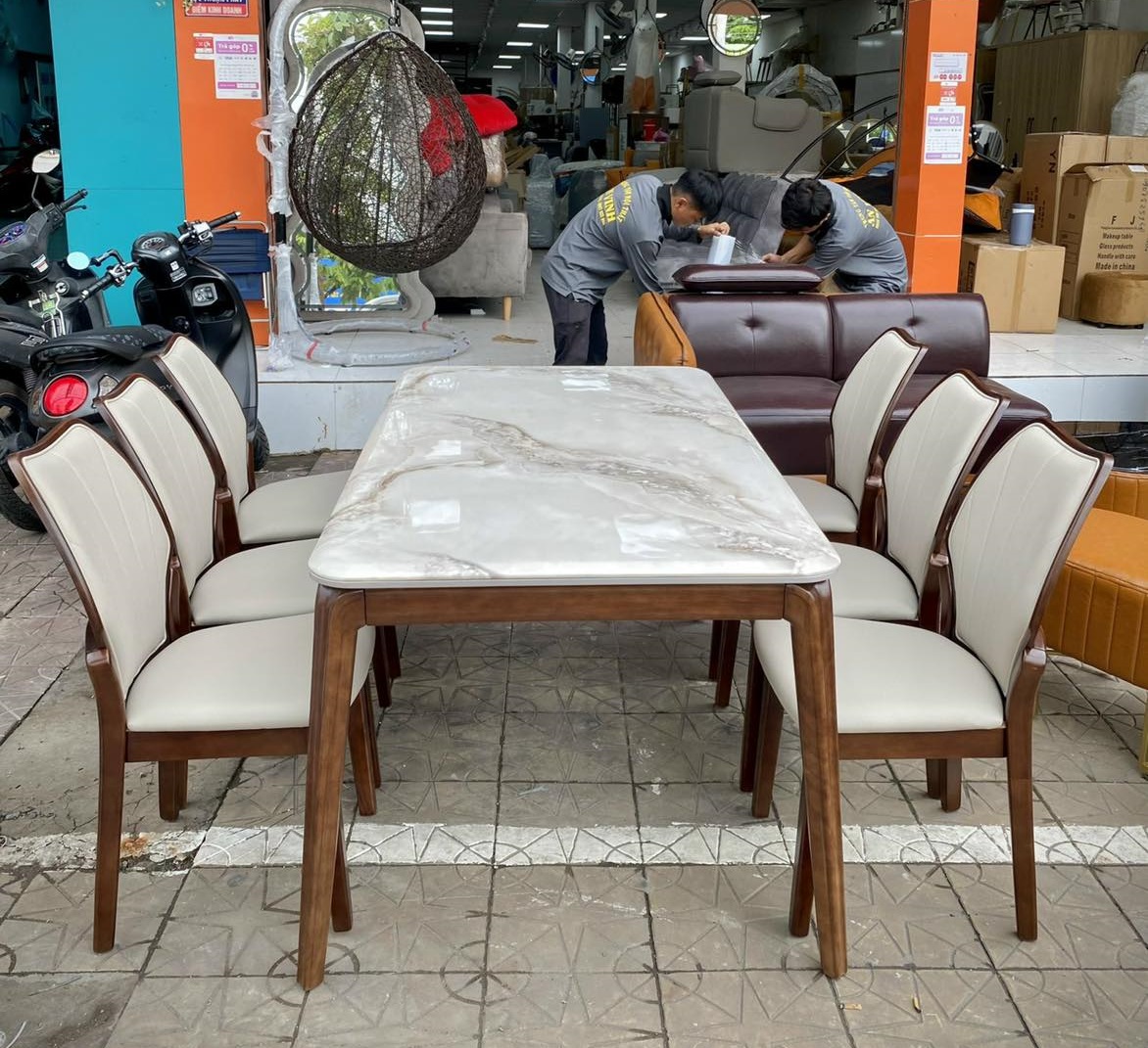 Mẫu ghế ăn với chất liệu khung gỗ tự nhiên bọc da cao cấp phong cách tân cổ điển phù hợp với nhiều không gian nội thất cũng như kết hợp với các mẫu bàn ăn cao cấp