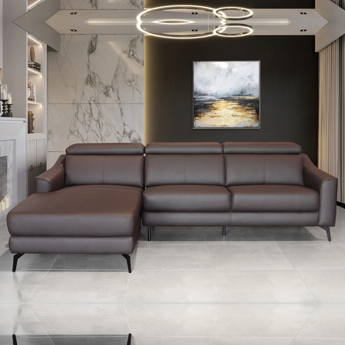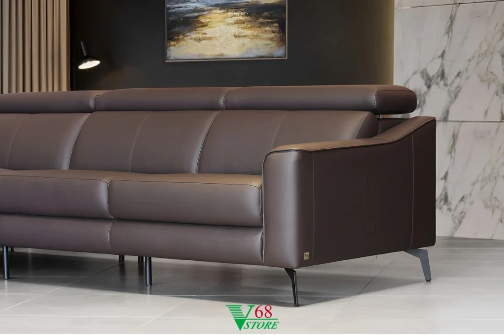 Vật liệu tùy chọn: Khung sofa được làm bằng gỗ tự nhiên có kết cấu chắc chắn tăng khả năng chịu lực của sản phẩm, có độ bền cao, bền bỉ theo năm tháng. bề mặt ghế phủ da PVC, da Half Leadther (Nhập khẩu Florida), Da Full Leadther Brazil nhập khẩu cao cấp, mềm mại mang đến sự thoải mái cho người sử dụng. Chất liệu này có thể vệ sinh dễ dàng và giúp tăng tính thẩm mỹ cho sản phẩm.