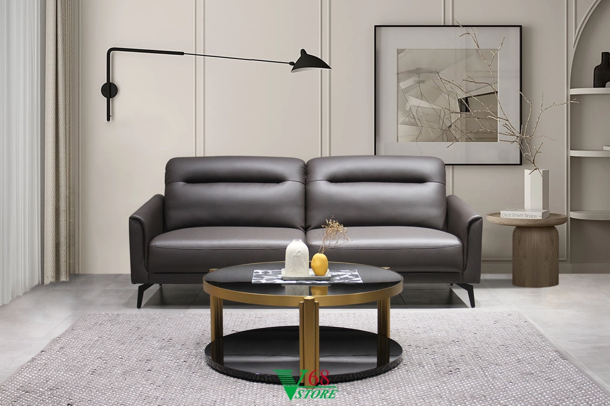 Vật liệu tùy chọn: Khung sofa được làm bằng gỗ tự nhiên có kết cấu chắc chắn tăng khả năng chịu lực của sản phẩm, có độ bền cao, bền bỉ theo năm tháng. bề mặt ghế phủ da PVC, da Half Leadther (Nhập khẩu Florida), Da Full Leadther Brazil nhập khẩu cao cấp, mềm mại mang đến sự thoải mái cho người sử dụng. Chất liệu này có thể vệ sinh dễ dàng và giúp tăng tính thẩm mỹ cho sản phẩm.