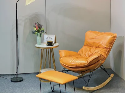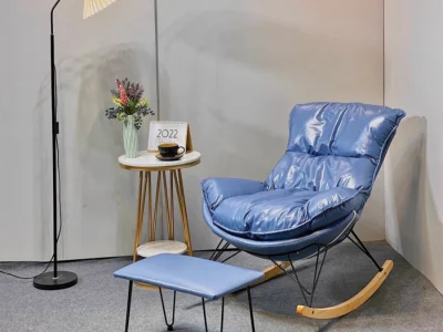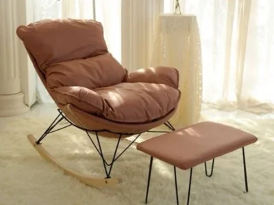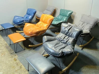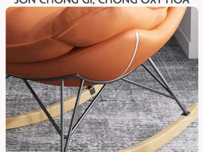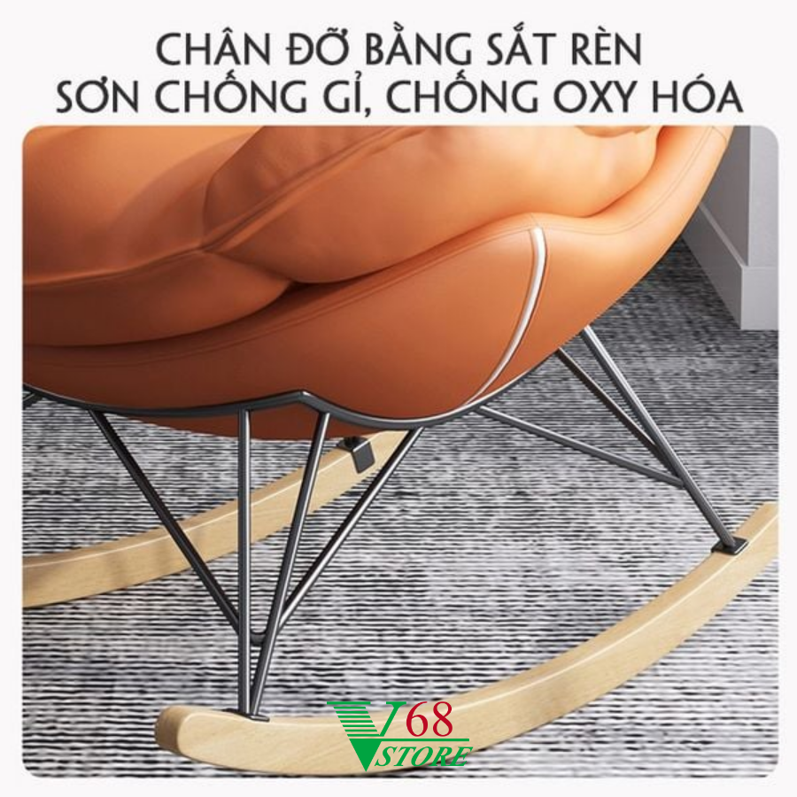 - Chất liệu: Khung chân thép không gỉ sơn tĩnh điện + Chân bập bênh ghế được làm từ gỗ sồi chắc chắn không mối mọt + chất liệu nệm mút (mousse) bọc da PU cao cấp cấu tạo nhiều sợi microfiber mịn như vải nỉ và siêu bền + chống thấm nước + dễ lau chùi