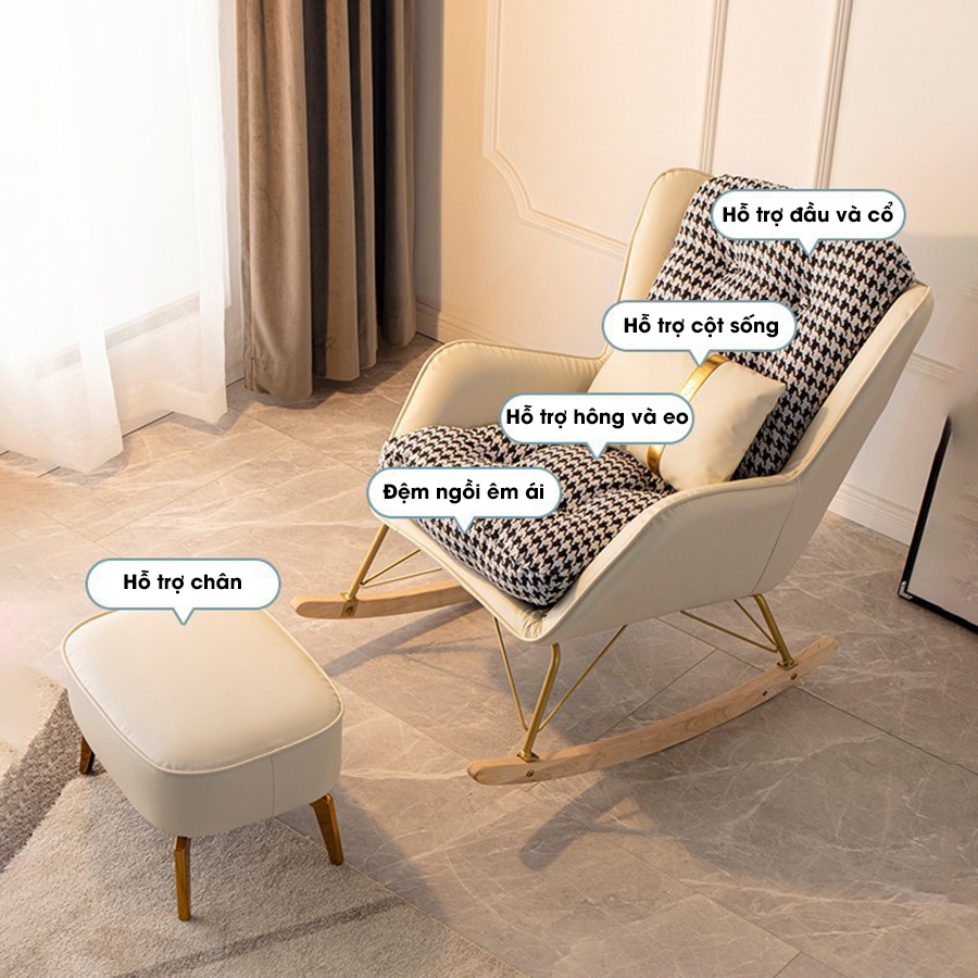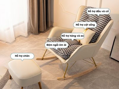 - Chức năng: ngồi thư giãn, đọc sách, xem tivi sau những ngày làm việc mệt mỏi. Ghế dùng được ở mọi không gian như phòng khách, phòng ngủ, phòng làm việc hay ngoài ban công\