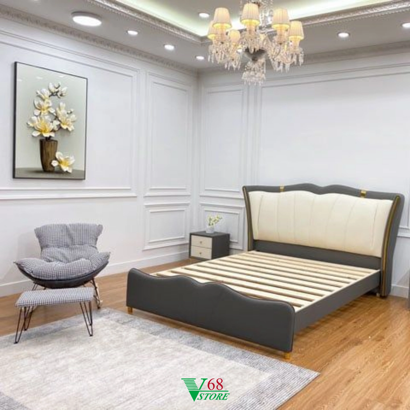 – Chân giường mạ inox cứng cáp, chắc chắn.