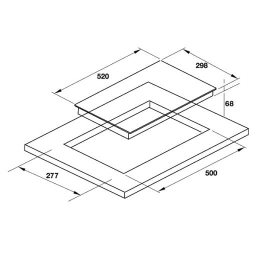 - Kích thước cắt đá : 277R x 500S mm