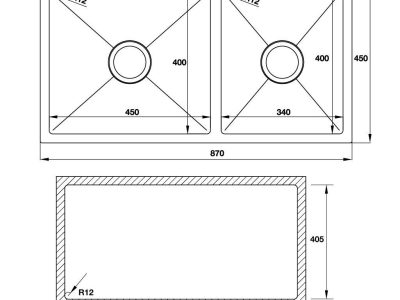 - Kích thước mỗi bồn: 450D x 400R/ 340D x 400R mm