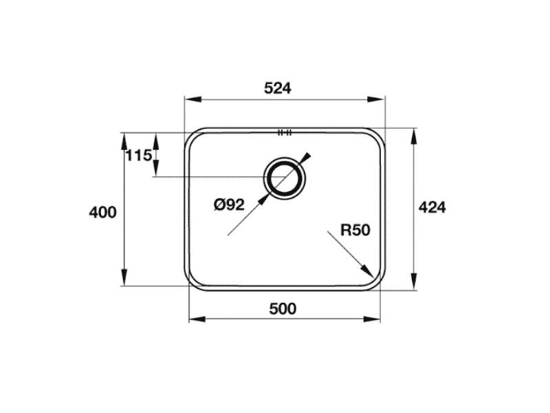 - Kích thước cắt đá: 510D x 410R mm.