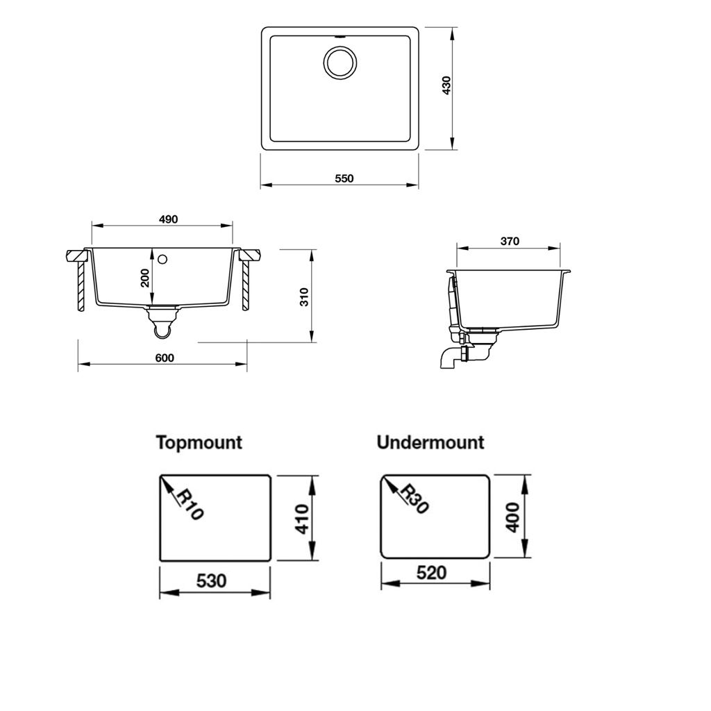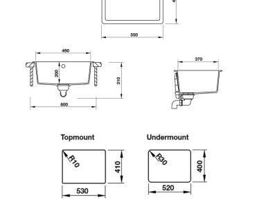 - Kích thước cắt đá lắp âm : 490D x 370Rmm