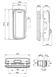 Kích thước thân khóa trong: 72.4 x 174.4 x 47.65mm