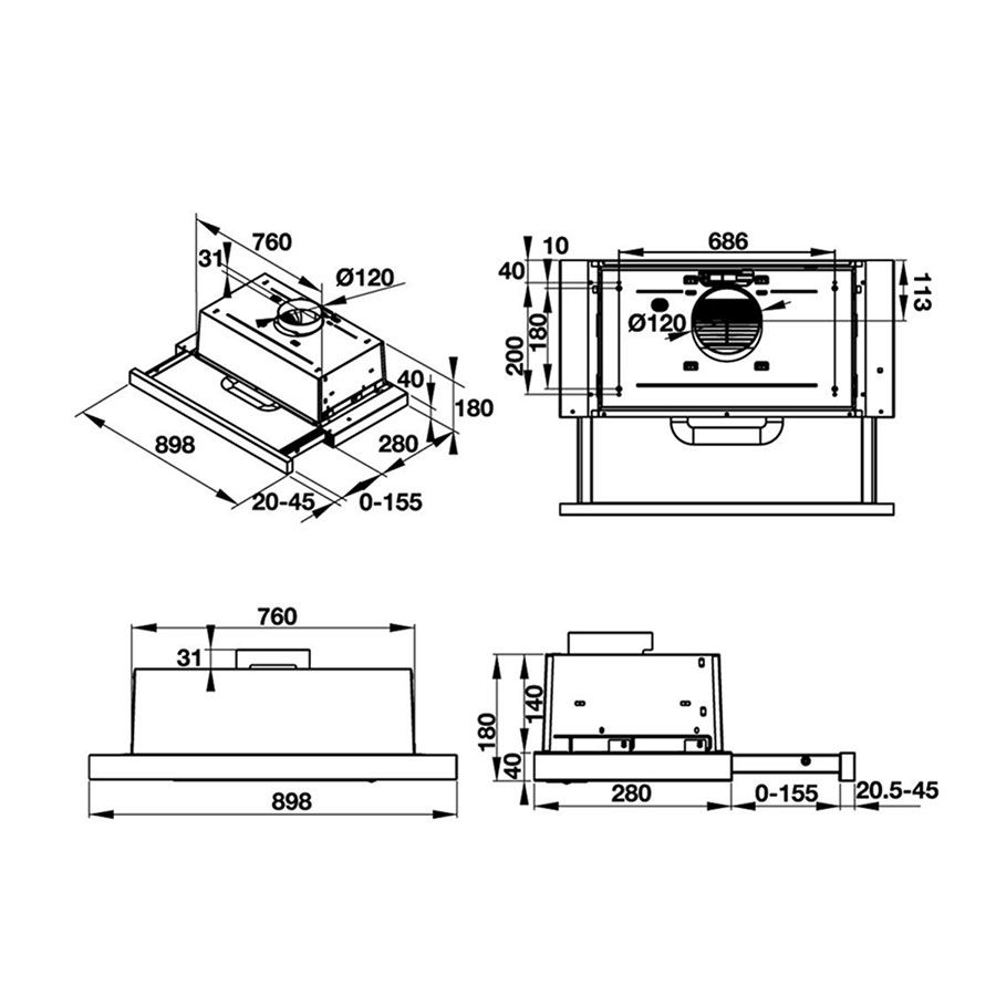 - Thiết kế dạng âm tủ 900mm