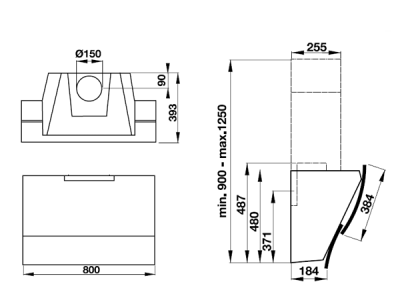 - Hút xả: 800R x 393S x 900 – 1250C mm