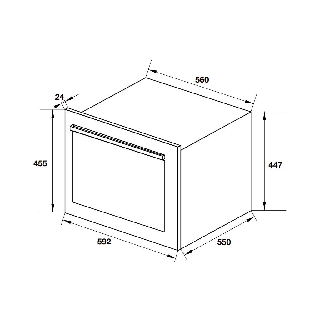 - Kích thước lắp đặt: 564R x 450C x 550S mm