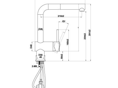 - Khoảng cách từ đầu vòi tới thân vòi: 253.5 ± 3 mm
