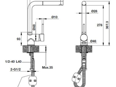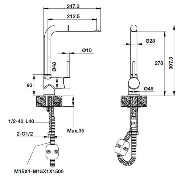 - Kích thước vòi bếp Hafele Titus HT-G280