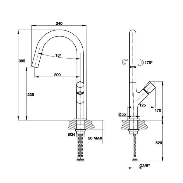 Vòi rửa chén Hafele HF-C211I 569.15.220 Có những đặc điểm sau