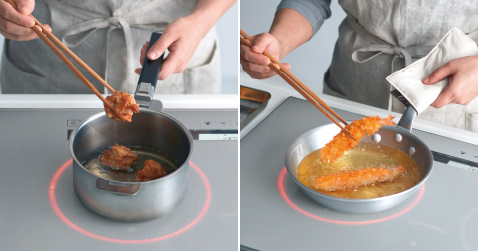 Bếp từ Hitachi HT-K6S nội địa Nhật Bản khi ở chế độ chiên xào nhiệt độ có thể được đặt theo mức tăng 10oC. Nó nóng lên ngay lập tức đến nhiệt độ cài đặt với nhiệt độ cao và ngay cả khi nhiệt độ giảm khi thêm thức ăn, nó sẽ nhanh chóng phát hiện và trả về nhiệt độ. Vì nó duy trì nhiệt độ không đổi nên nó sẽ giòn ngay cả khi bạn tiếp tục chiên.