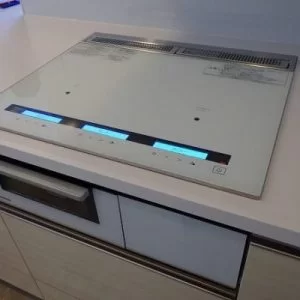 - Mặt bếp màu trắng xám sang trọng và sạch đẹp
