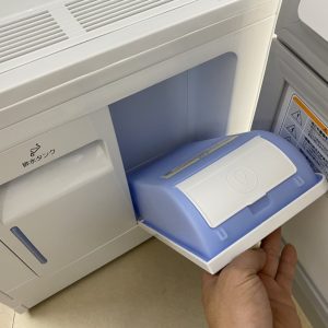 Đối với máy giặt hấp sấy này có 2 ngăn để nước và nước xả, không phải sử dụng nước vòi cấp nước và ống xả rất tiện lợi.