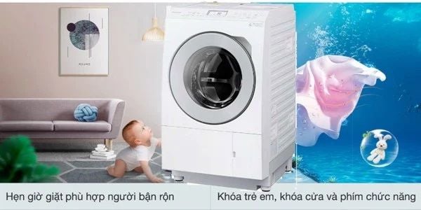 Chức năng này đảm bảo an toàn cho gia đình, bảo vệ trẻ nhỏ tốt hơn. Bởi khi khởi động chức năng khóa trẻ em, máy sẽ khóa bảng điều khiển và cửa máy lại để khi trẻ có chơi đùa quanh thiết bị, chạm vào bàn phím cũng không gây nguy hiểm cho chúng