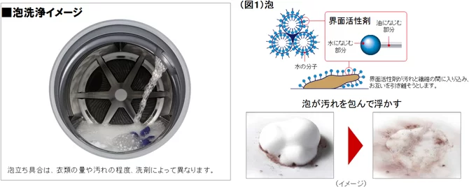 Máy giặt Panasonic NA-VX7200 trang bị công nghệ “giặt bọt” sử dụng sức mạnh của bọt này trong máy giặt cửa đứng tạo nên sức mạnh giặt sạch đột biếnMáy giặt Panasonic NA-VX7200 sử dụng phương pháp công nghệ làm sạch spin dance làm sạch bọt nồng độ cao vòi phun nước áp lực thẩm thấu bọt khí, sau đó sử dụng “vòi hoa sen phun tia thâm nhập” để thấm nước vào quần áo cùng một lúc để loại bỏ vết bẩn trên quần áo. Do đó, nhiều chất hoạt động bề mặt có trong bột giặt có thể được thấm vào quần áo một cách hiệu quả và có thể loại bỏ các vết bã nhờn khó tẩy.