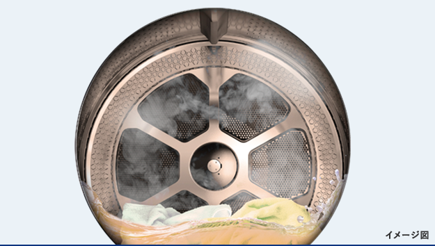 Nếu như ở các máy nội địa nhật khử khuẩn quần áo bằng công nghệ Nanoe hoặc NanoeX, thì ở chiếc máy này là sự kết hợp giữa bong bóng EX và giặt nước nóng để khử khuẩn tối đa cho quần áo. Đối với người thường xuyên sử dụng máy giặt nội địa Nhật thì không còn xa lạ với công nghệ giặt nước nóng. Tuy được giặt bằng nước nóng không hề làm hư hại quần áo của người sử dụng.
