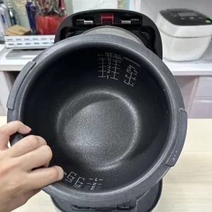 Thiết kế xoong cực dày, đây là thiết kế cao cấp đặc trưng của nhà Tiger. Lòng nồi có kết cấu lên đến 9 lớp với 6 lớp thép không gỉ, 3 lớp môi chất giúp tăng khả năng dẫn nhiệt, gia tăng độ ngọt của hạt gạo. Bên trong lớp chống dính tráng vân men sứ cực bền và giúp hạt gạo tăng động hơn khi nén và giải nén áp suất.