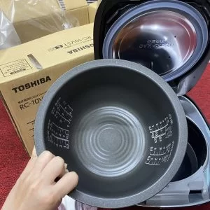 Nồi cơm điện Toshiba RC-10VST nội địa Nhật Bản có dung tích 1L nấu được 1kg gạo. Đây là phiên bản cao cấp mới nhất hiện nay. Nồi được thiết kế đẹp, các phím điều khiển cảm ứng dễ dàng sử dụng ngay từ lần dầu tiên. Màn hình hiển thị LCD hiển thị quá trình nấu. Nồi có tính năng thông minh như công nghệ hút chân không, công nghệ áp suất, cao tần IH giúp các hạt gạo được nấu chín đều và thơm ngon. Cơm được bảo quản thơm ngon đến tận 40 tiếng mà không bị ôi. Ngoài ra, menu nấu tự động thông minh sẽ giúp cho việc nấu cơm ngon trở nên đơn giản và bảo toàn dưỡng chất trong gạo mang đến một chất lượng bữa cơm tốt nhất cho gia đình bạn!