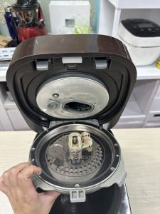 Nồi cơm điện Toshiba RC-10VXE4 nấu cơm ngon cũng nhờ công nghệ áp suất cao tần. Công nghệ này được thiết kế ở dưới dạng bị ẩn ở bên dưới nắp nồi. Cơm được nấu chín ở nhiệt độ cao nhất, nhờ đó hạt gạo sau khi nấu rất dẻo thơm.