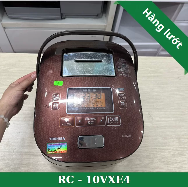 Nồi cơm điện Toshiba RC-10VXE4 nội địa Nhật Bản có dung tích 1L nấu được 1kg gạo. Nồi có tone màu nâu đất sang trọng, hình thức đẹp. Dù là hàng đã qua sử dụng nhưng còn rất đẹp. Nồi còn mới 90%, xoong đẹp ko trầy tróc, thiết kế xoong chuông vip nhất của Toshiba. Nguyên bản điện áp 100V. Bảng điều khiển là các phím cơ. Màn hình hiển thị LCD hiển thị. Nồi nấu bằng IH cao tần, công nghệ áp suất cao tần. Thành phẩm là những hạt cơm dẻo ngon ngọt cho cả gia đình!