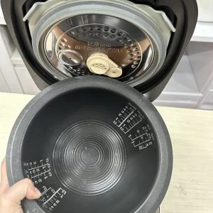 Điểm nhấn của những dòng nồi cơm điện bản vip nhà Toshiba nằm ở chiếc nồi chuông. Thiết kế này rất đặc biệt, cấu tạo nồi rất dày, cầm rất nặng tay. Nhờ thiết kế dáng chuông giúp quá trình đun sôi gạo đảo đều liên tục. Nhờ đó, hạt cơm được chín đều, hạt gạo nẩy nở, đảy ngọt vị ngọt có trong hạt gạo.