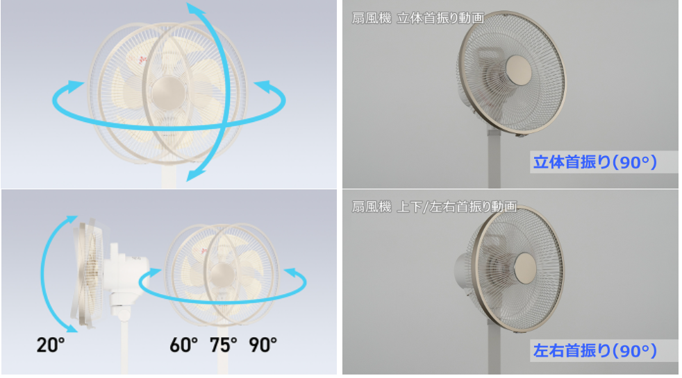 Khác biệt so với những chiếc quạt thông thường, mẫu quạt F-CV339 có khả năng quay lên xuống trái phải đồng thời, điều này giúp tạo ra 1 luồng gió hình “Sin” giống với hình những gợn sóng giúp đẩy luồng không khí đi xa hơn, đồng thời tăng diện tích làm mát giúp không khí trong phòng thoáng hơn.