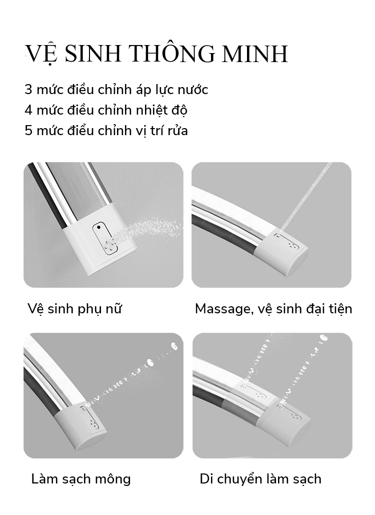 - Nhiều chế độ xả tiện nghi, thoải mái: vệ sinh hậu môn, vệ sinh phụ nữ, vệ sinh massage