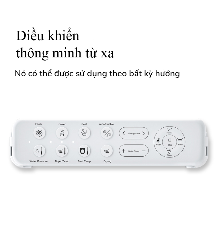 - Chức năng tùy chỉnh mở/đóng nắp và xả nước bằng điều khiển hoặc nút nhấn