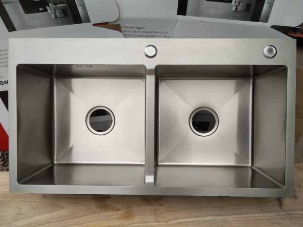 Bộ sản phẩm gồm: 1 chậu rửa bát & 1 Bộ xi phông, ống xả chậu rửa bát 2 hố XP418