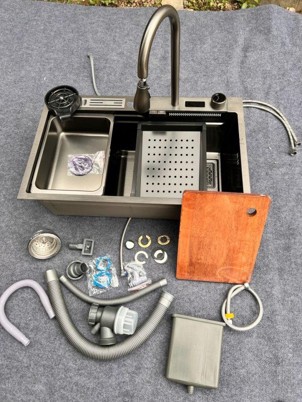 Bộ sản phẩm bao gồm : 1 chậu inox 304 + 1 bộ xi phông + 1 chậu phụ + 1 khay phụ + 1 rửa cốc + 1 vòi hiển thị nhiệt độ + 1 thác chảy + 1 thớt